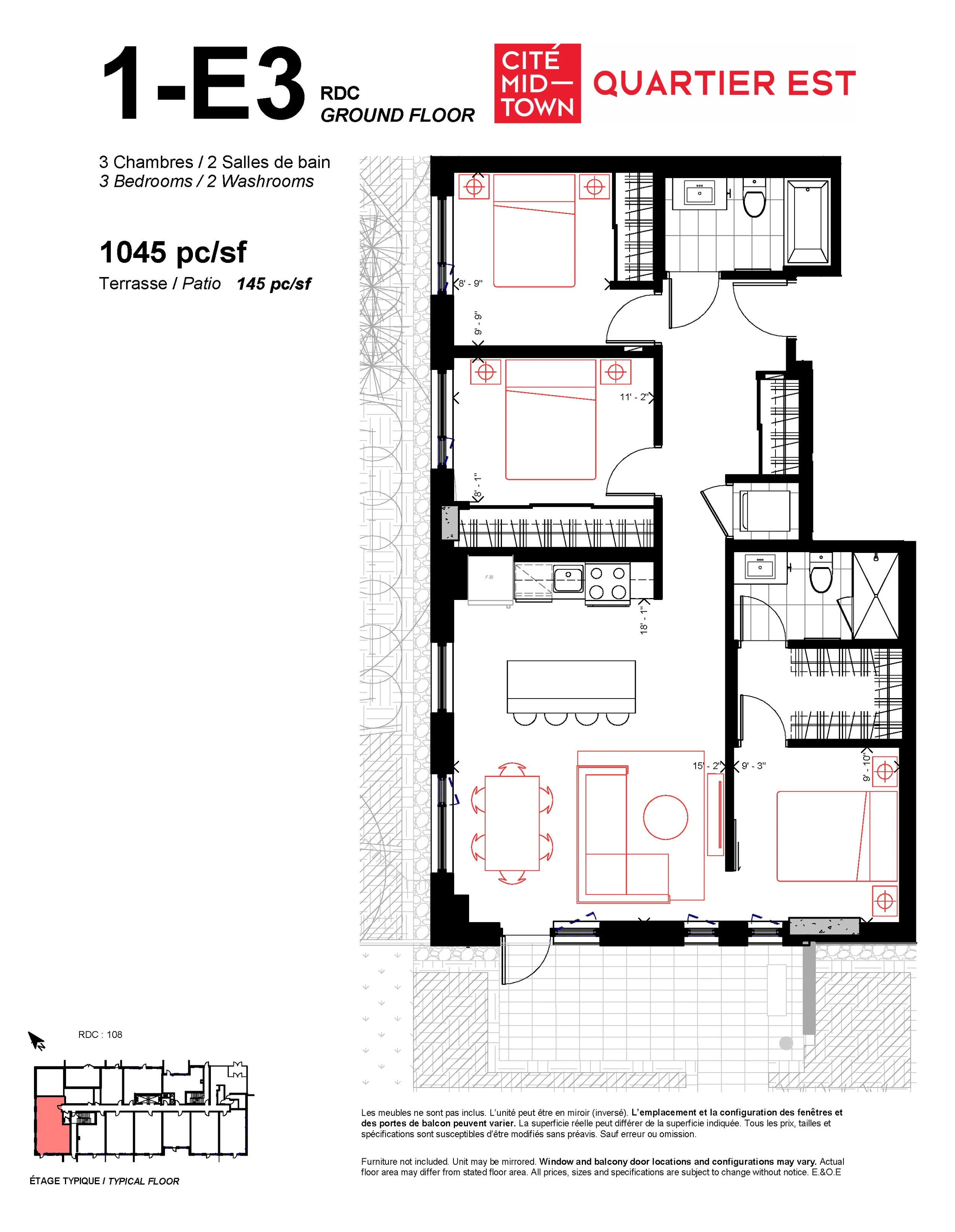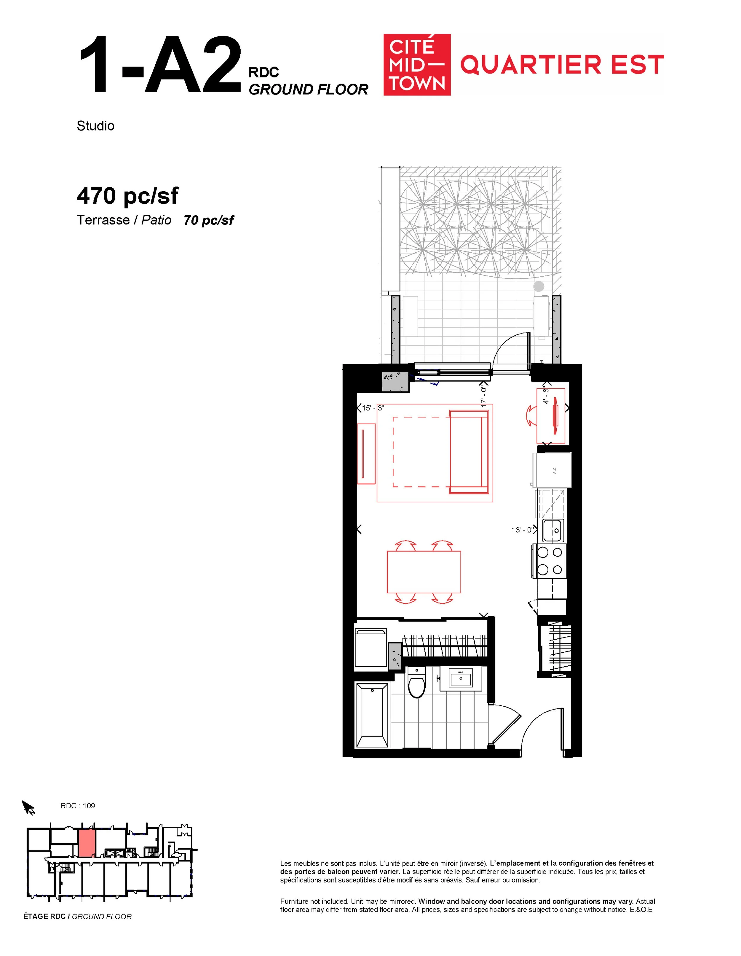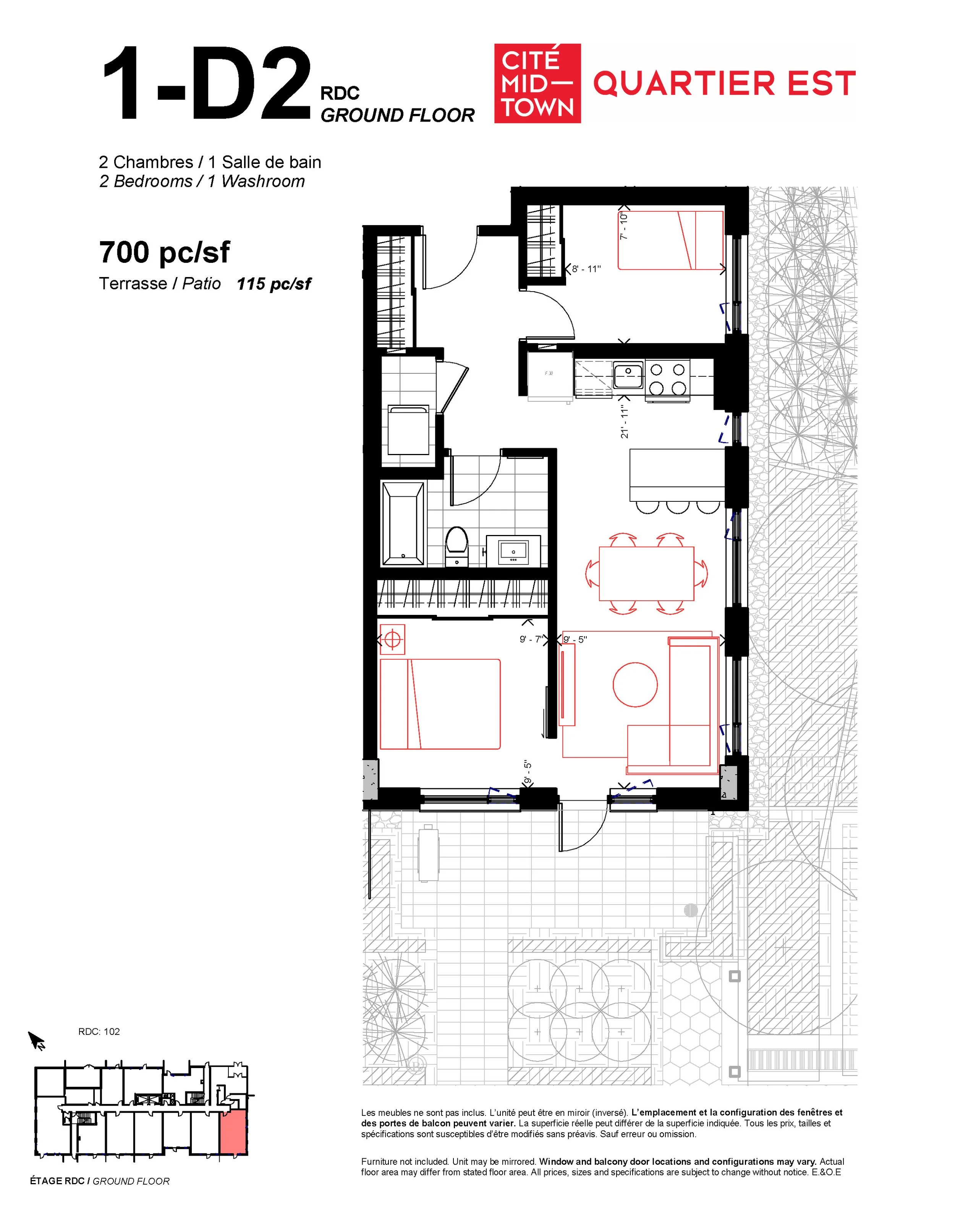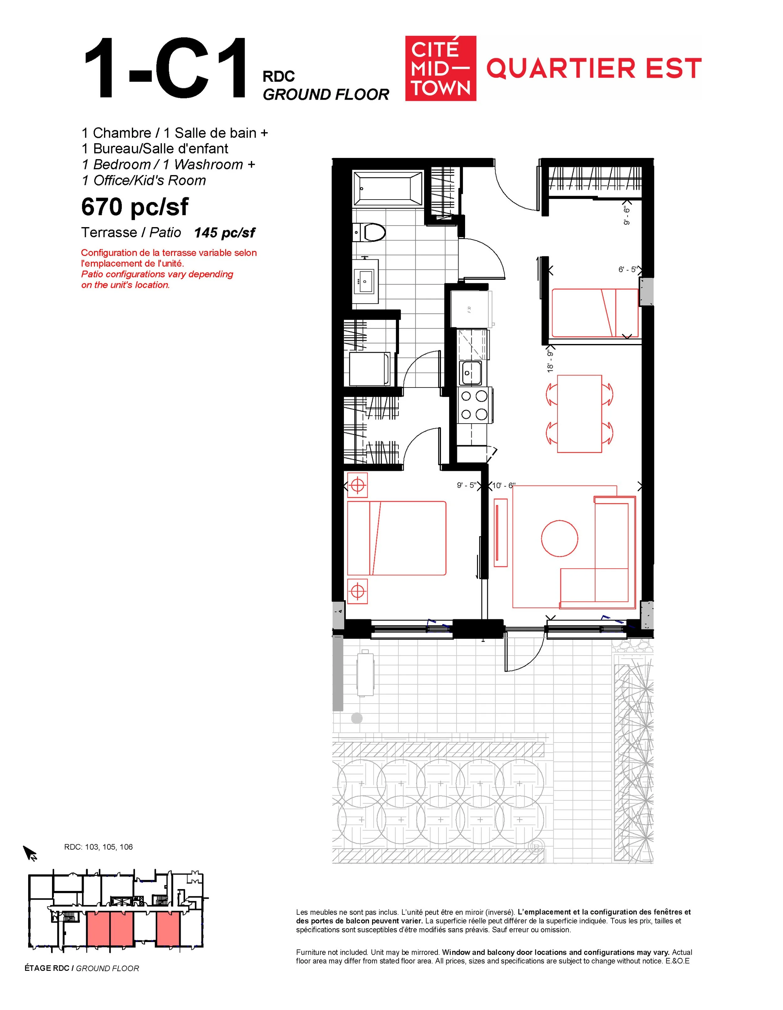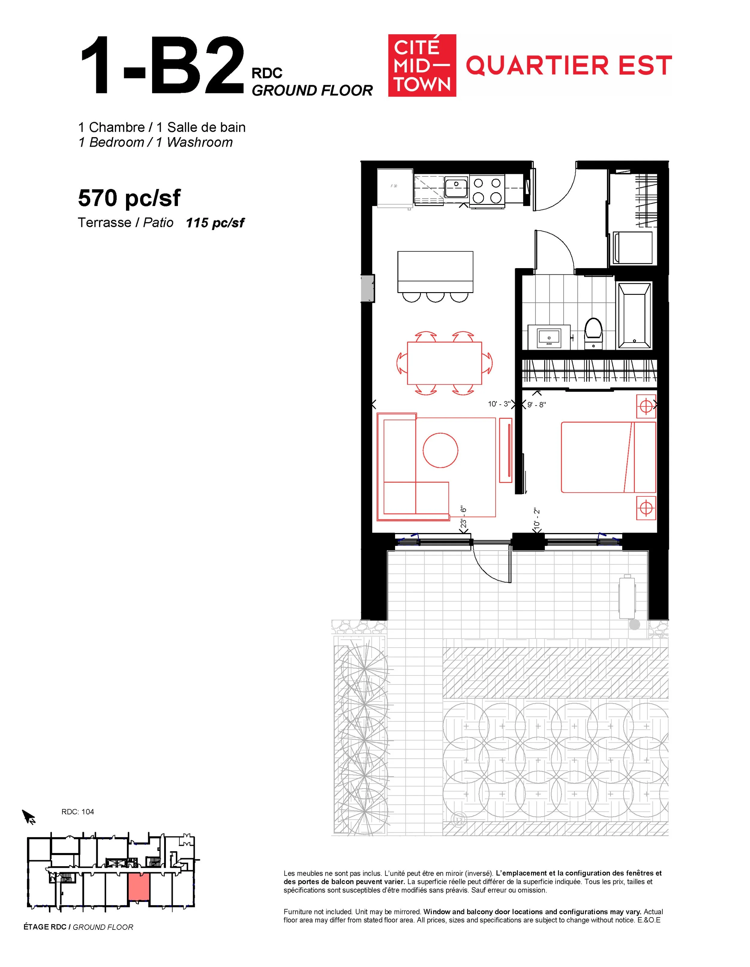 This unit is located in the “for purchase” part of Cité Midtown and may contain some finishing details that are different from what is being delivered in the “for rent” part. Ask your rental representative for details.